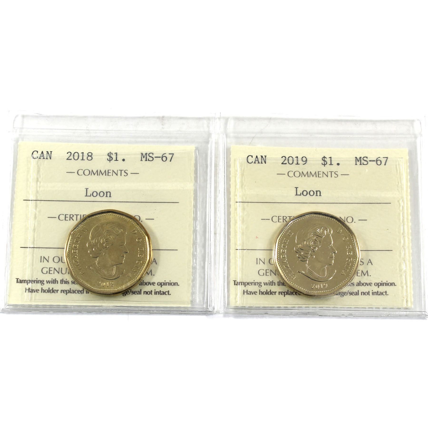 Loon $1 2018 & 2019 ICCS Certified MS-67. 2pcs