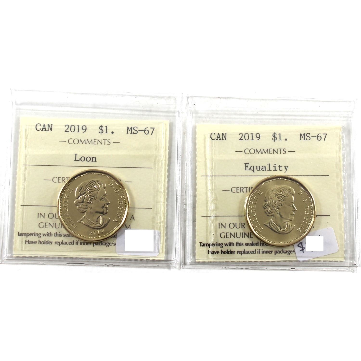 Loon $1 2019 Regular Loon & Equality Commemorative ICCS Certified MS-67! Top Grades! 2pcs