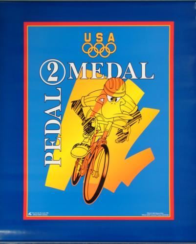 This fabulous bicycle racing poster - featuring Daffy Duck - was created for the Olympic Games in Atlanta in 1996:Title: "Pedal 2 Medal" Poster on glossy paper 16 × 20 Excellent condition; has been stored rolled; never mounted, matted or framed Looney!
