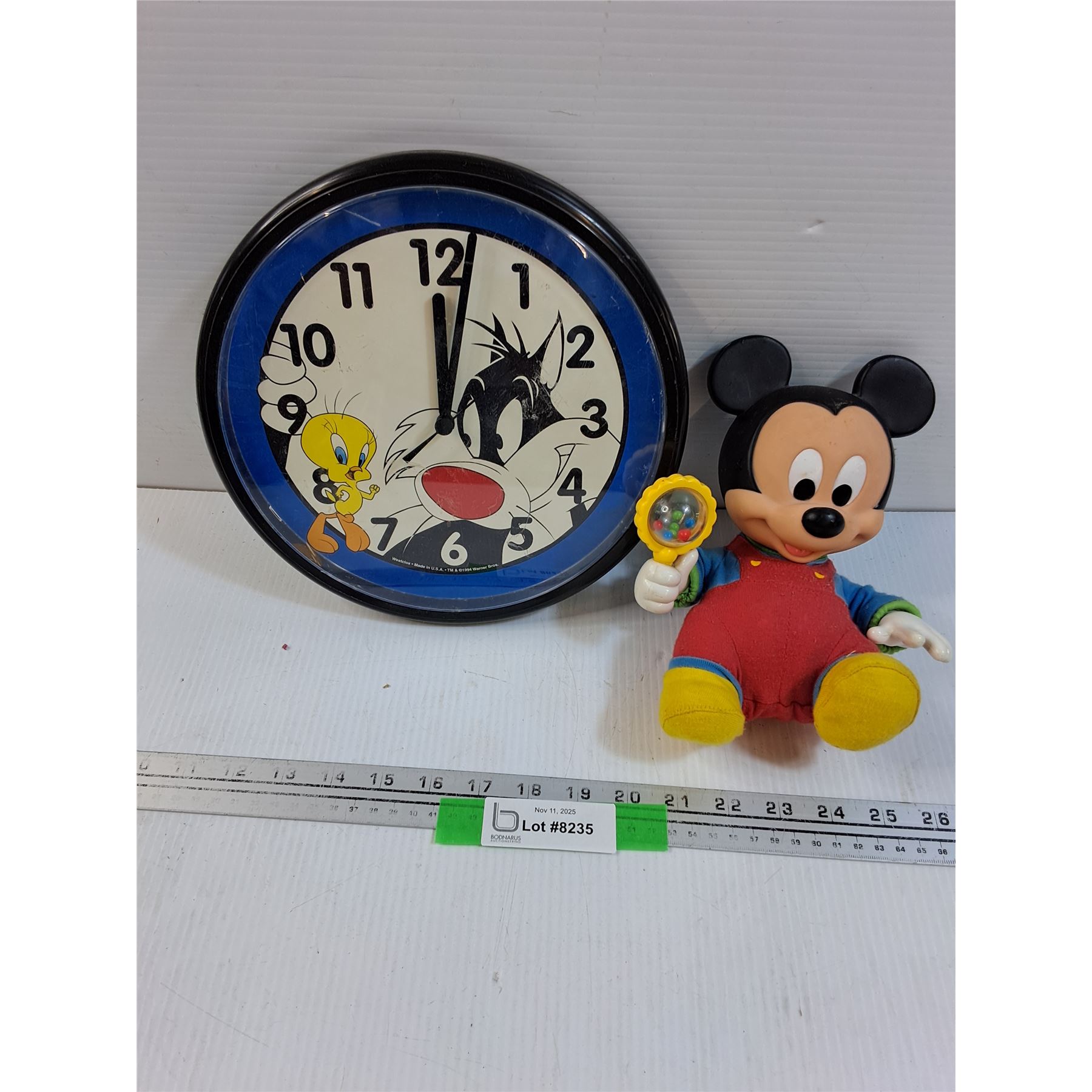 Looney Tunes Battery Clock & Baby Mickey Mouse Toy
