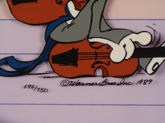 This Looney Tunes animation sericel was hand signed by the great Chuck Jones. This Quintet of Looney musicians is certainly creating some interesting music. A few of them seem a little distracted. Note that the first, second, and third strings are all played by one Bugs Bunny!