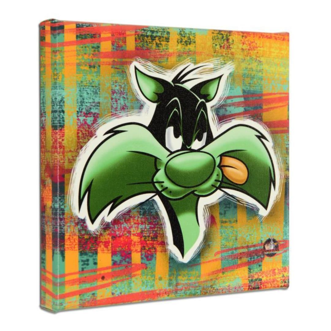 "Sylvester" is a limited edition giclee on gallery wrapped canvas by Looney Tunes. This piece comes from an edition of 500 and bears an imprint of Looney Tunes' official seal. Includes Certificate of Authenticity. Measures approx. 10" x 10" (image) This item requires special handling and may have a longer than usual turnaround.