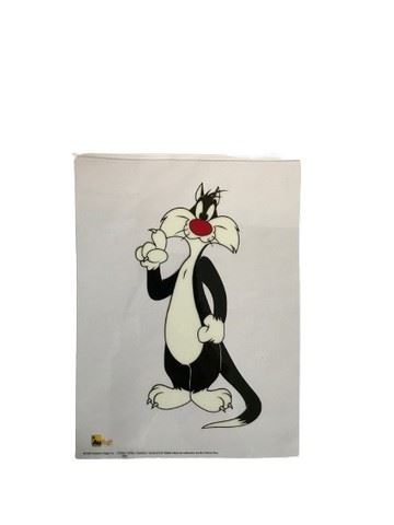 This vivid 6" x 8" silk-screened acetate sericel of Looney Tunes' Sylvester, The Cat is officially licensed by Warner Brothers, produced by Authentic Images, Inc. and includes a calming blue background printed on cardstock that helps Sylvester stand out from his clear, eternal acetate prison. Produced in 2002, limited to 3,500 prints.