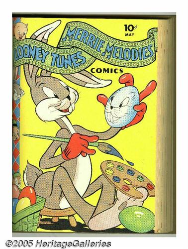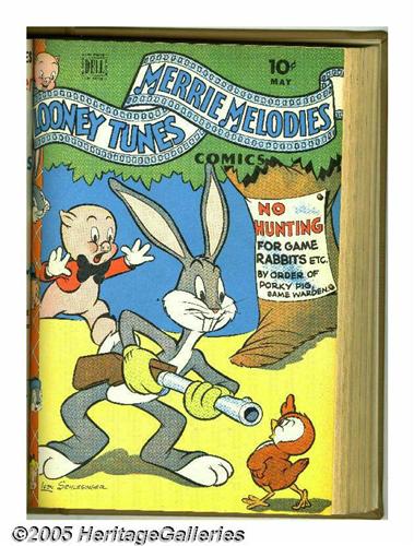 <B>Looney Tunes and Merrie Melodies Comics #13-36 Bound Volume (Dell, 1942-44).</B></I> These are Western Publishing file copies which have been trimmed and bound into two hardcover volumes. Issues #15 and 20-25 have Walt Kelly art. Approximate Overstreet VG 4.0 value for group = $1,500. <I>From the Random House Archives.</B></I>