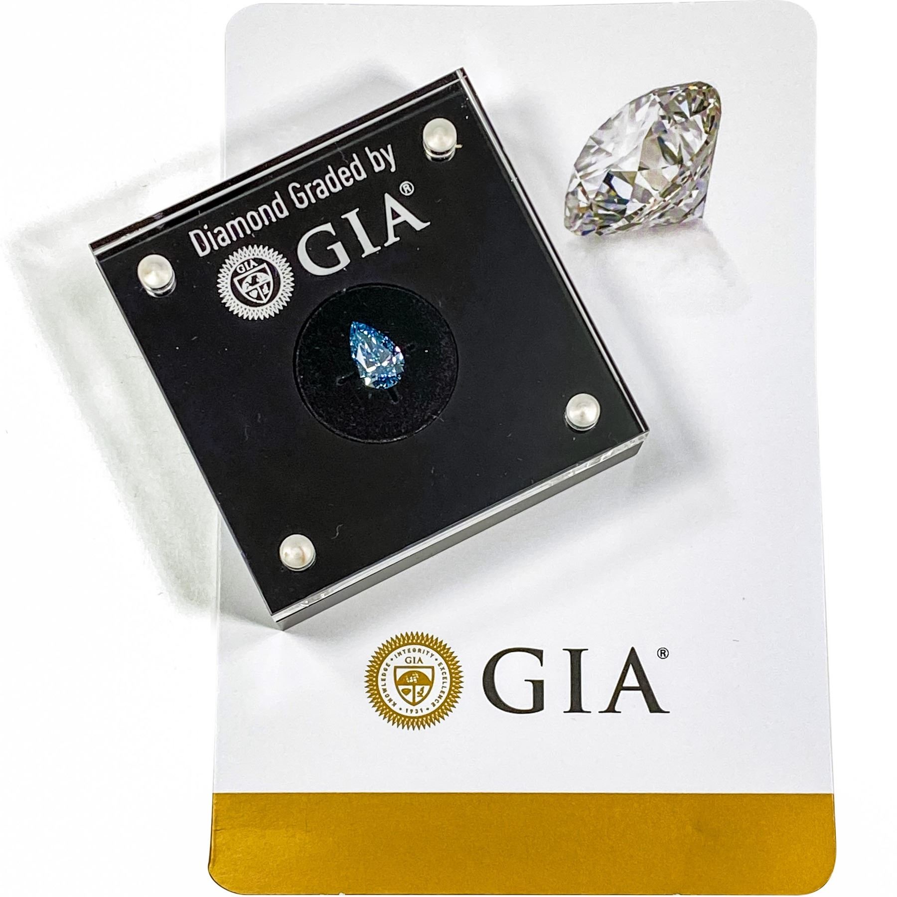 Loose 1.15 CT Natural Diamond, Pear cut, VS1-VS2, Fancy Intense Blue