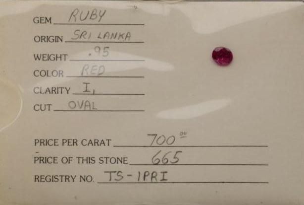 Loose ruby .95ct oval cut. Est. $150-$300.