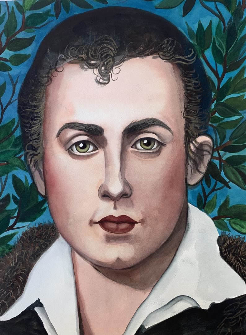 A pastel & watercolor portrait of the great British poet, bard & notorious scoundrel . 24x18" on deckled fine art paper, by Anonymous