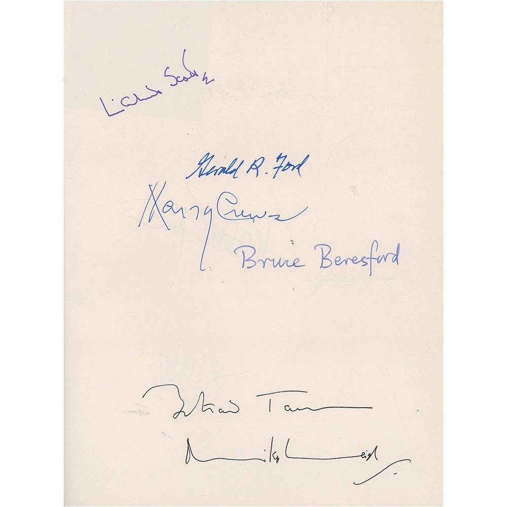 Signed book: Lord John Film Festival. Limited first edition, one of 350 issued. Northridge, CA: Lord John Press, 2006. Hardcover with dust jacket, 9 x 11.5, 224 pages. Signed on the opening and closing pages in various ink types by 21 notable attendees, including: Gerald Ford, Robert Bloch, Ray Bradbury, Janet Leigh, John Updike, Lizabeth Scott, Dennis Etchison, Harry Crews, Bruce Beresford, Bertrand Tavernier, Mike Leigh, Richard Matheson, Jules Dassin, Steve Rasnic Tem, Brian Cox, Louise Fletcher, Alex Rocco, and more. In fine condition.