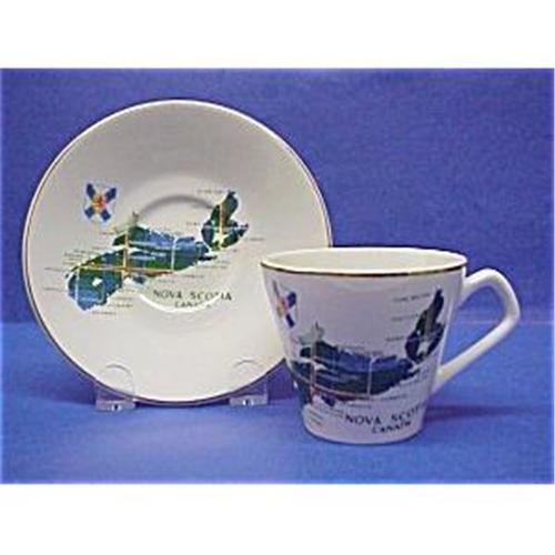 Lovely set cup and saucer depicting map of Nova Scotia Canada.Very unique!,Excellent condition free of any damage and it seems never used. US Buyer to pay 7.00 for shipping plus insurance.THANKS.