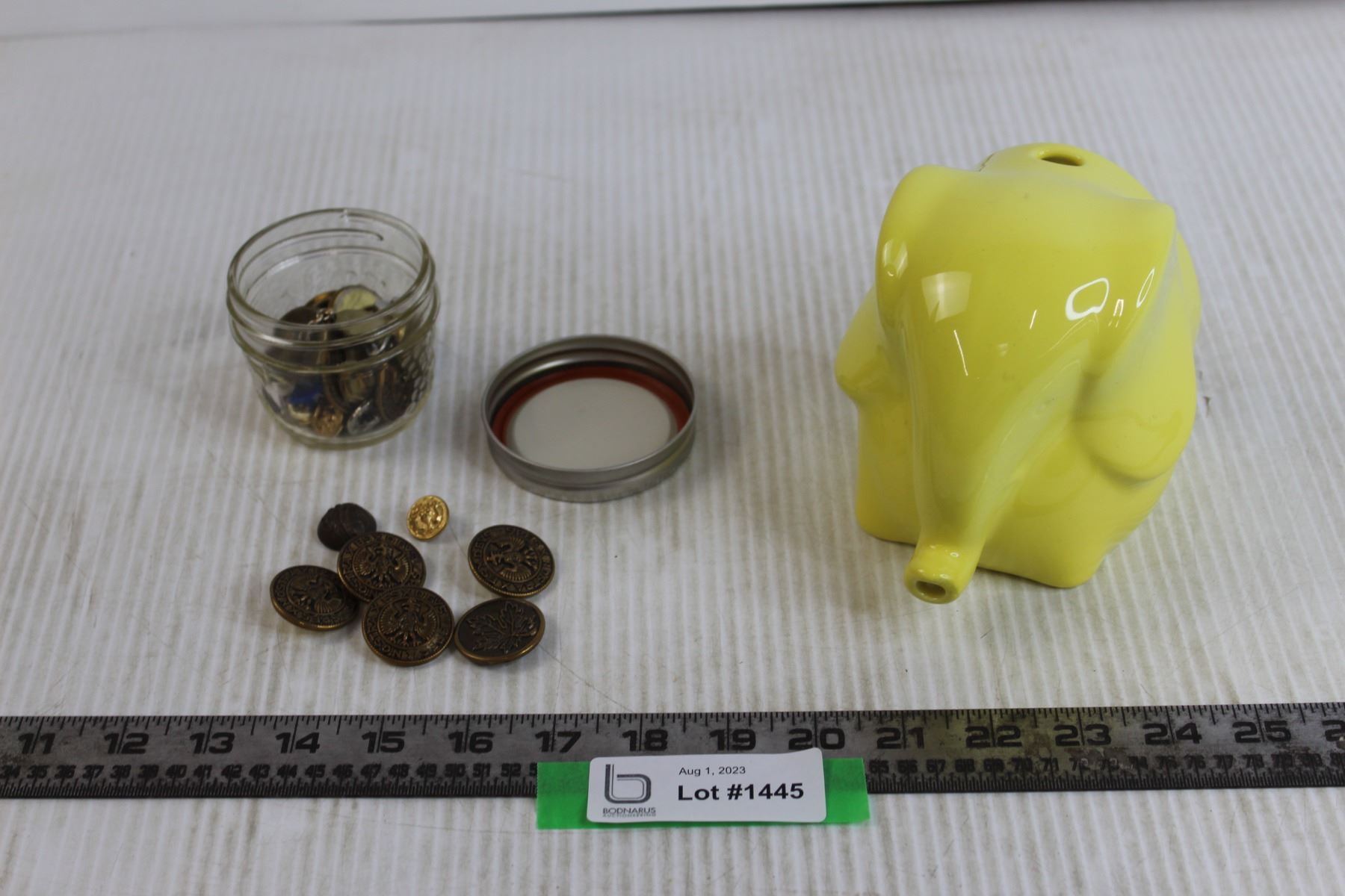 Lord Nelson Pottery Elephant String Holder, Small Jar with Metal Buttons