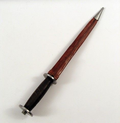 Lord Of The Rings Fellowship Practice Sword - Great detail was heaped upon Peter Jackson's trilogy for Lord of the Rings. Every department demanded top quality personnel, and a great deal of time and money was spent on making everything just right. This included working with the actors, especially in the very iconic battle, fight, horse and sword play. Among the teachers was legendary Sword Master Alice Capper-Starr. This is a practiced sword leather sheath used during per-production sessions with the actors on "Lord of the Rings: Fellowship of the Ring" (2001). (Approx. 20" long).