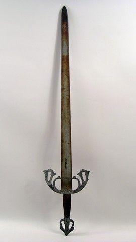 From the third in the "Lord of the Rings" trilogy, "Return of the King" (2003), an art-directed "rusted" metal sword used as a background prop. (approx. 38 1/2" long). Oversized item.