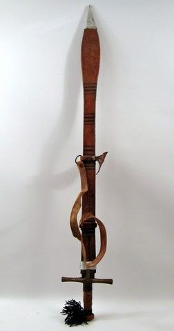An extra long art-directed to look "rusted", metal sword and matching leather sheath from "Lord of the Rings: Return of the King" (2003). (Approx. 43" long). Oversized item.