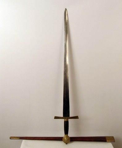 In "Lord of the Rings: Two Towers" (2002), Frodo and Sam move even closer into Mordor, and the War of the Ring is about to begin! This is an unusual metal sword and leather sheath from this, the second part in the trilogy. (Approx. 39" long). Oversized item. Additional postage required.