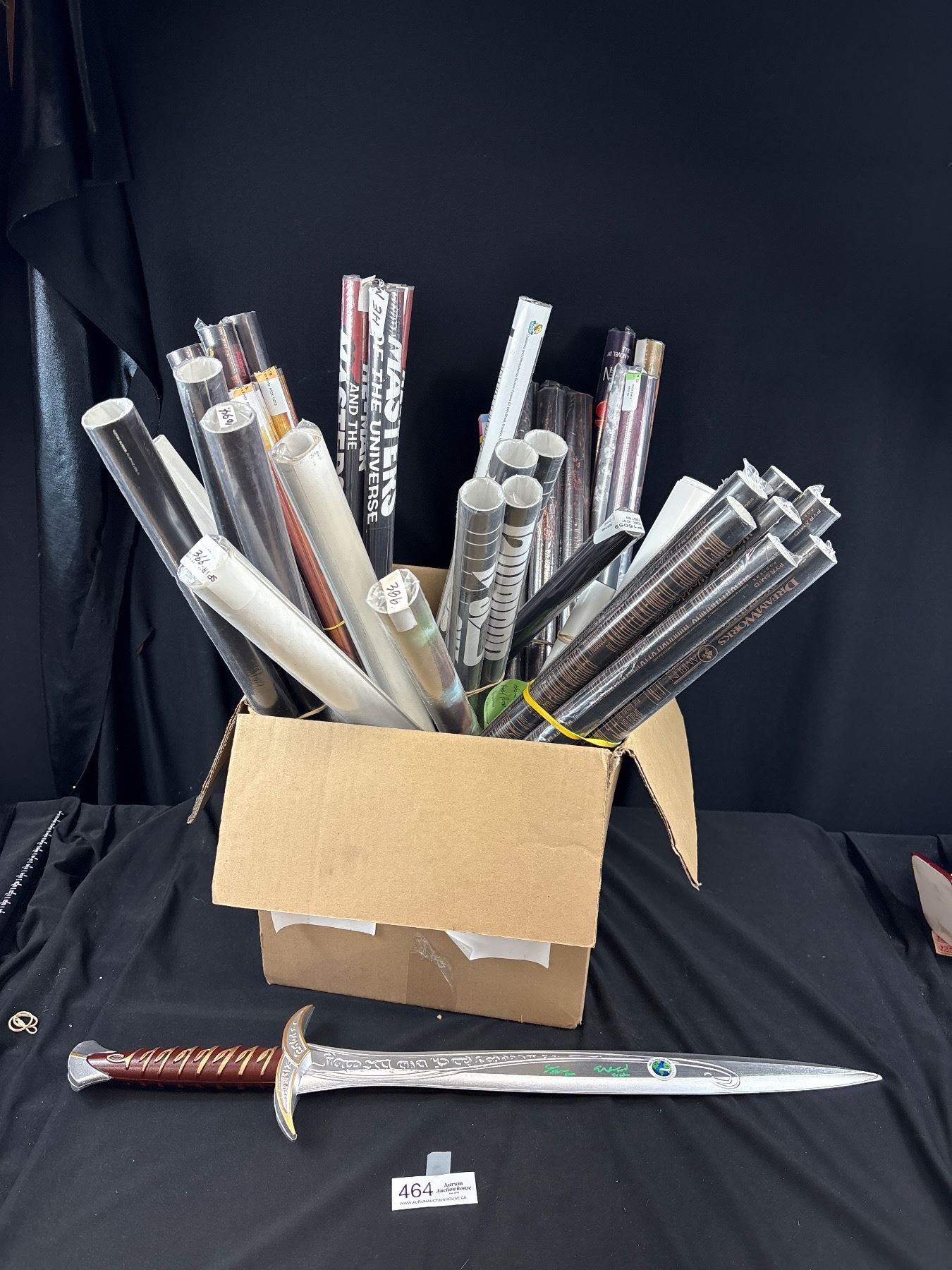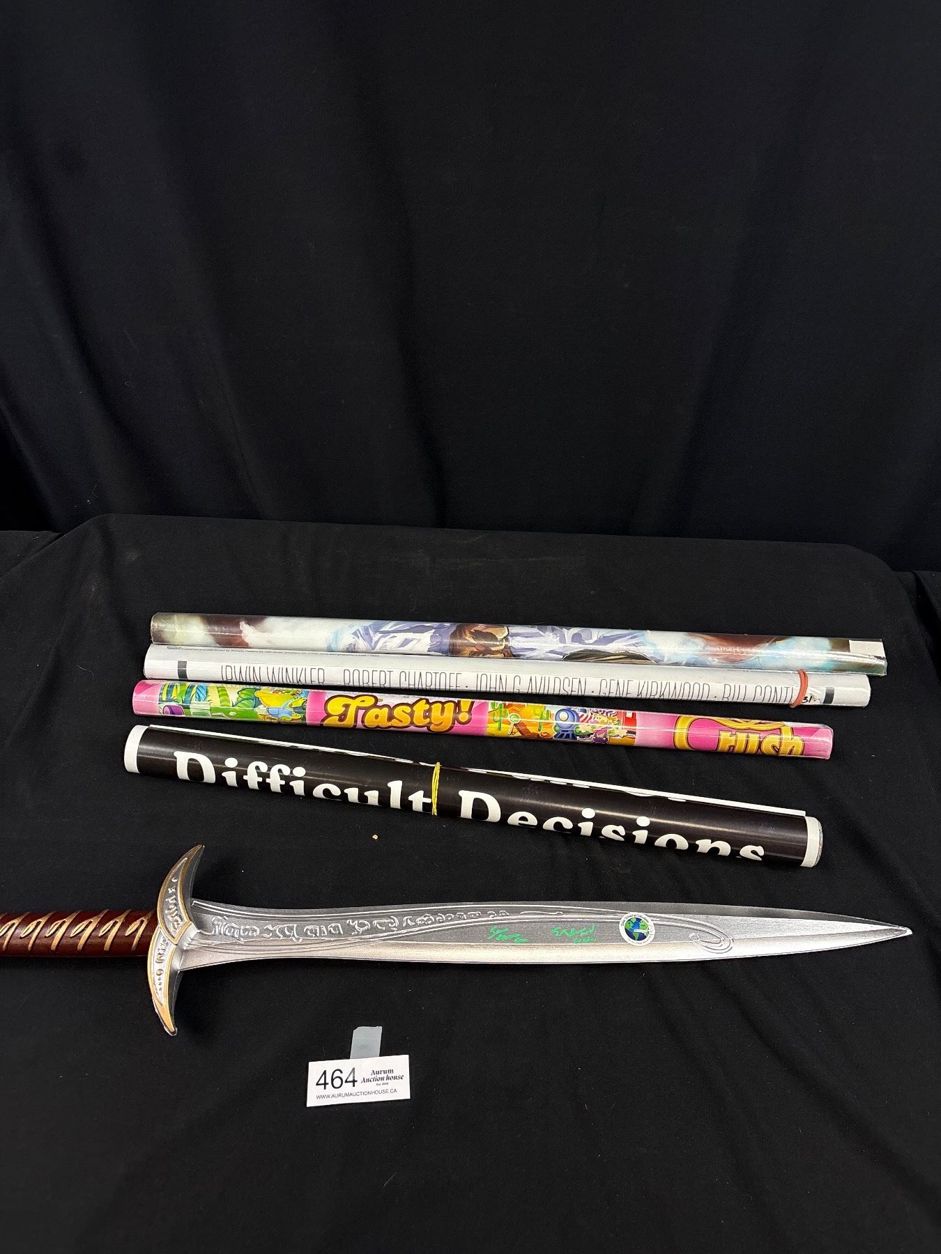 Lord of The Rings Signed Replica Sword + Large Lot of Unopened Posters, He Man, God Father, Etc