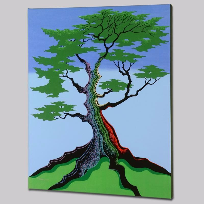 Larissa Holt, a student of distinguished artist Eyvind Earle (1916-2000), uses bold colors and breathtaking scenery to create images of Nature in her own unique style. "Lord of the Hills" is a limited edition giclee on stretched canvas by Holt, numbered and bearing Holt's authorized signature. This piece comes gallery wrapped with a black border, and is ready to hang. Includes Certificate of Authenticity! Measures approx. 21.5" x 27" x 1.5" (image). Retail Price $375.00. PRICE INCUDES FREE SHIPPING IN THE U.S. - SHIPPING WILL BE ADDED TO YOUR INVOICE FOR ALL BUYERS OUTSIDE OF THE U.S.