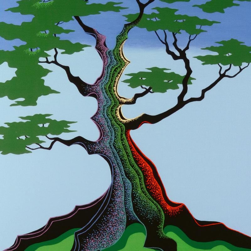 Larissa Holt, a student of distinguished artist Eyvind Earle (1916-2000), uses bold colors and breathtaking scenery to create images of Nature in her own unique style. "Lord of the Hills" is a limited edition giclee on stretched canvas by Holt, numbered and bearing Holt's authorized signature. This piece comes gallery wrapped. Includes Certificate of Authenticity! Measures approx. 21.5" x 27" x 1.5" (image).