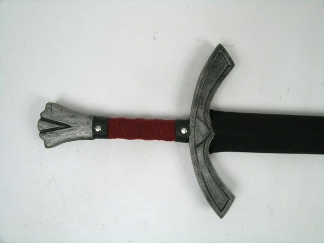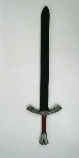 Lord of the Rings Production Practice Sword Prop - Great attention was used in the "Lord of the Rings" films when it came to sword play, both to create exciting sequences, and for safety. Among the teachers was sword master Alice Capper-Starr. This is an actor's off camera practice sword from the productions. Hard foam hilt and handle with fabric wrapped grip. Foam blade with rigid core and black fabric cover. Approx. 40" long and 10" wide at hand guard. Oversized item. Additional postage required.
