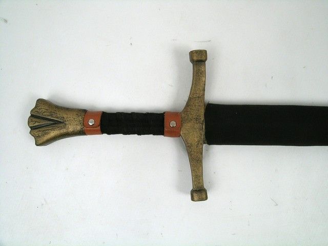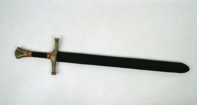 During the epic production of the "Lord of the Rings" films, director Peter Jackson insisted that every department went for the highest standards. This included the action sequences, and he made sure that the actors were highly trained in all weaponry. Among the teachers hired was sword master Alice Capper-Starr. This is an actor's off camera practice sword used during production. Hard foam hilt and handle with fabric wrapped grip. Foam blade with rigid core and black fabric cover. Approx. 44" long and 9" wide at hand guard. Oversized item. Additional postage required.