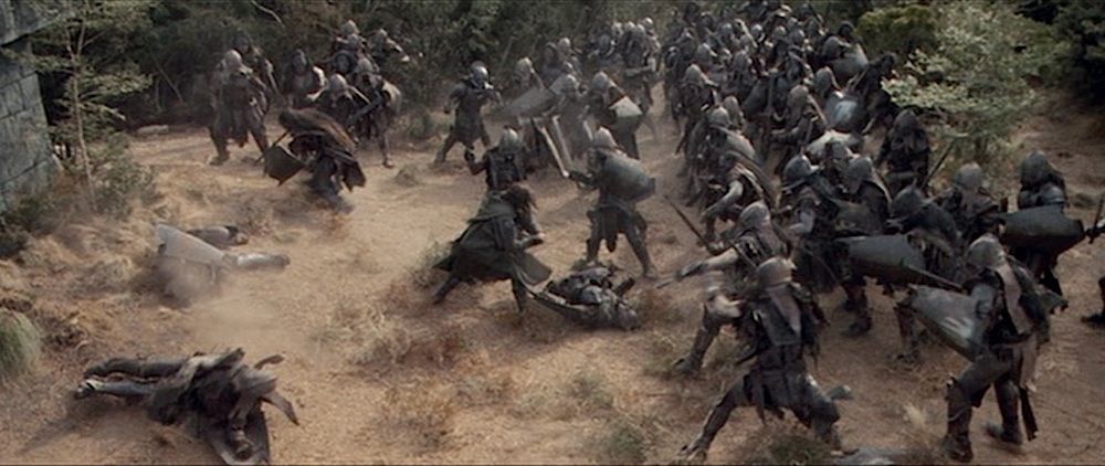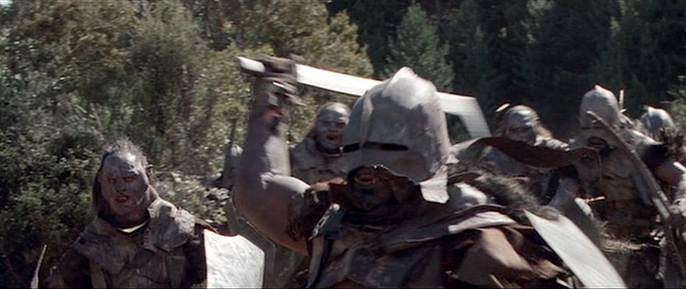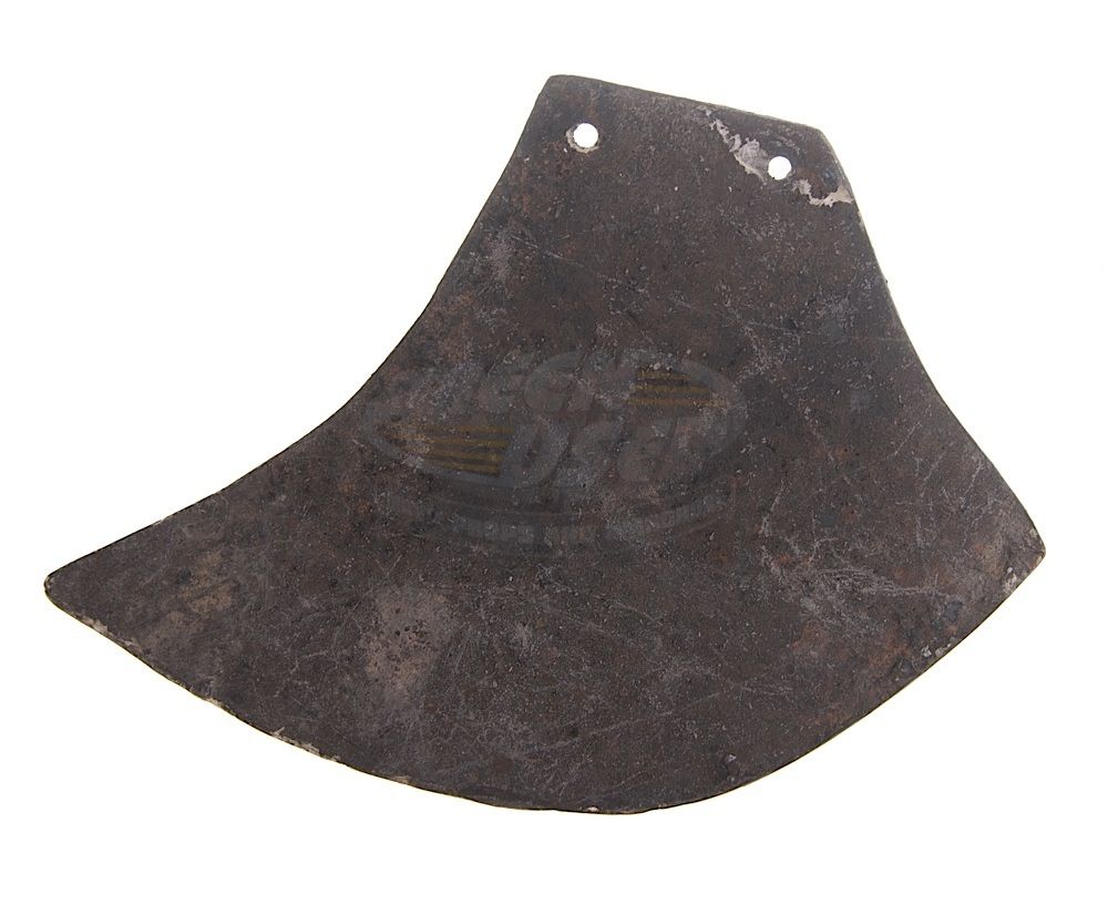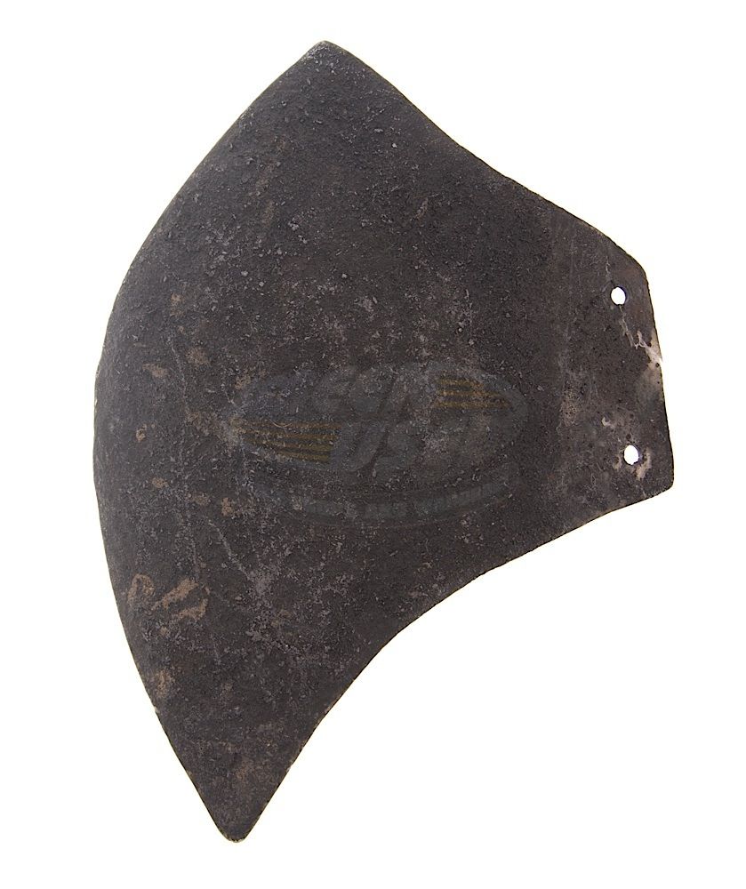 (New Line Cinema, 2001) This costume armor plate was custom-made by the production for use by various actors as "Uruk Hai". The armor plate is made of hard plastic with a rough textured finish to give the appearance of distressed aged metal. Measures 9" x 6.5".