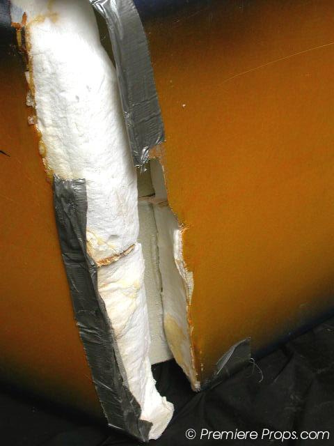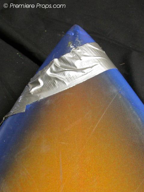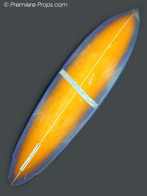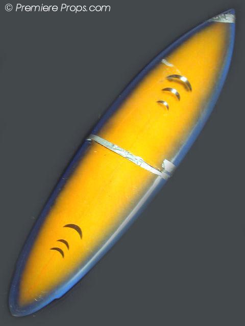 Lords of Dogtown - This is Skip's (Heath Ledger) surfboard movie prop from the movie "Lords of Dogtown." It measures 82" x 19.5" and is blue and yellow. It has minor dings and scratches from use on the set. There is no fin. The board is broken in half and is being held together with duct tape. This movie prop was clearly seen broken on screen when Skip (Heath Ledger) throws the board off of the surf shop roof. A must have for the true fan of a legendary actor!!! (DOG3056) This item is oversized, shipping rates determined by bidder's zip code. Please E-Mail before bidding.