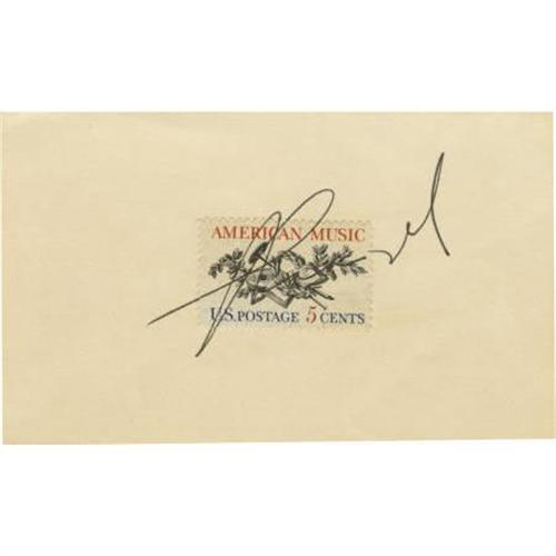 <B>Loren Maazel Autograph.</B></I> A 3" x 5" card, with a five-cent commemorative postage stamp affixed, signed by the acclaimed conductor in black ink. Maazel's autograph extends across the face of the stamp and is large and clean. In Excellent condition.<BR><BR><b>Shipping:</b> Flat Material, Small (<a target="_blank" href="http://www.heritageauctions.com/common/shipping.php">view shipping information</a>)