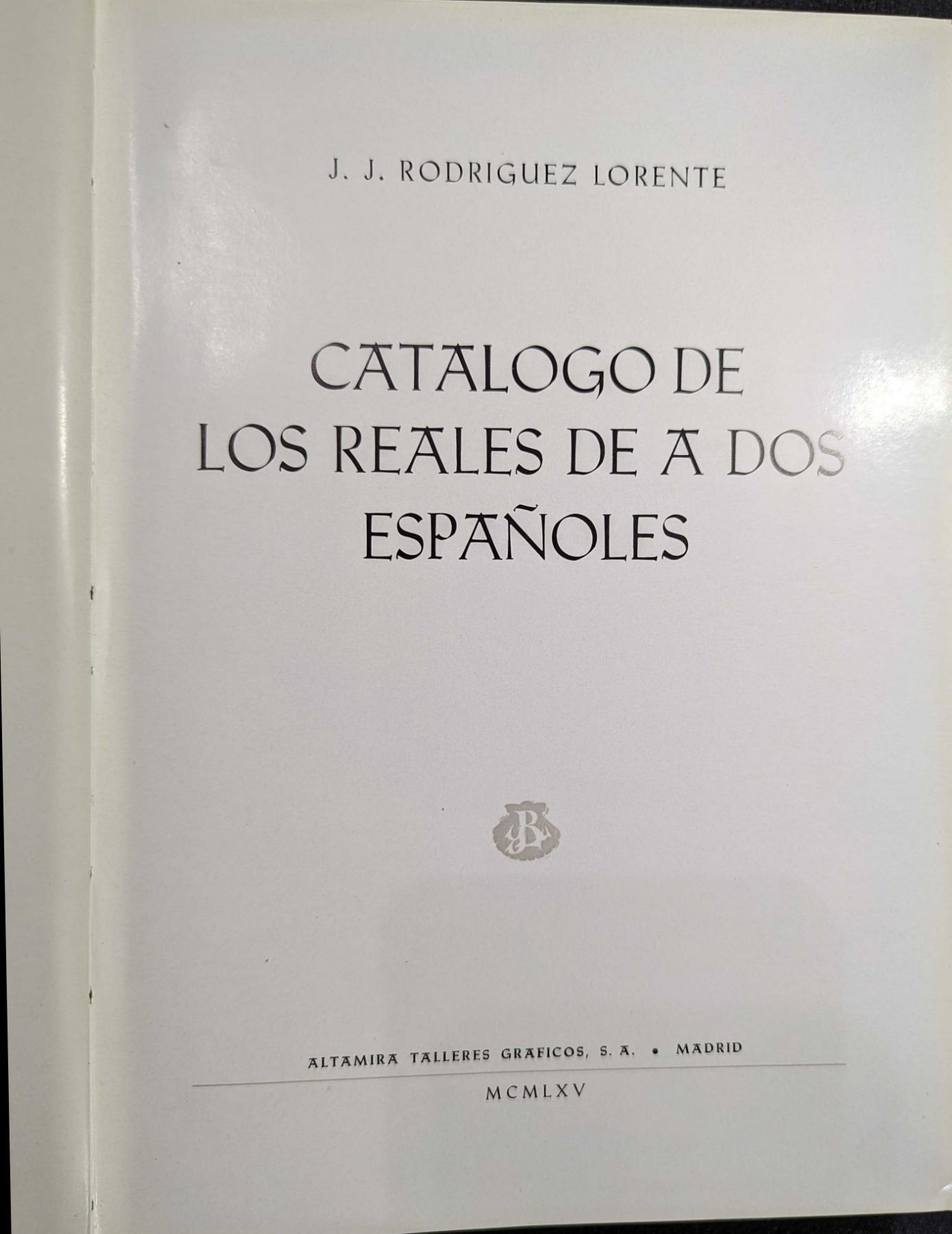 Lorente, J. J. Rodriguez. CATALOGO DE LOS REALES DE A DOS ESPANOLES. J. J. Rodriguez Lorente. 1965. 4to. 217, (7) pages. Madrid. original black cloth, gilt. frontispiece. illustrated. tables. Very Good. Limited edition 86 of 1012 copies. ex Carling Gresham Library bookplate. Text in Spanish and English. This book is an illustrated priced catalog of two reales coinage from Spain and the Spanish Americas. It is organized by Mint, then by monarch, assayer and date and includes coin photos of types and enlargements of various distinguishing features. Lot weight: 2 lbs 7oz. Subject(s): Spanish, Spanish Colonial Coinage.
