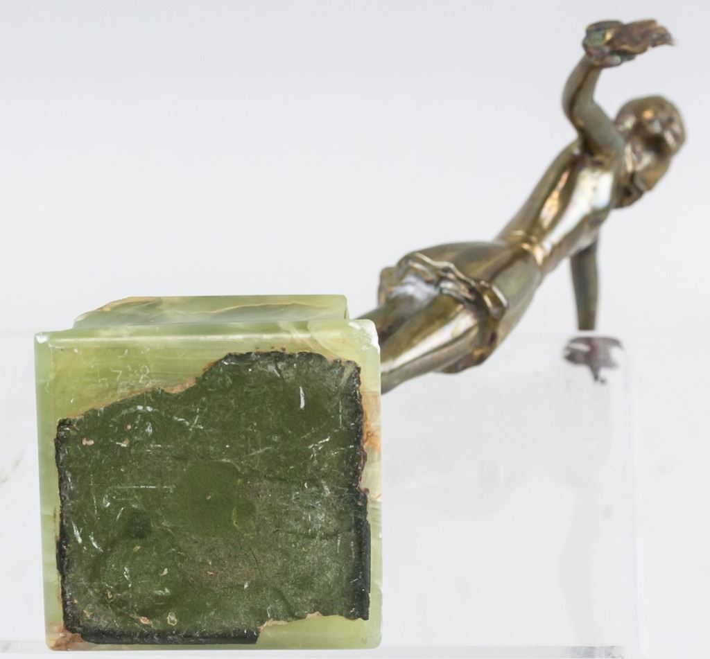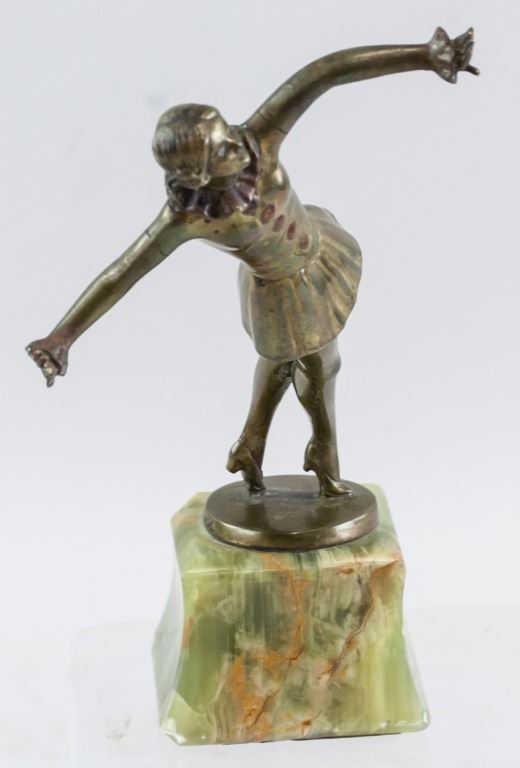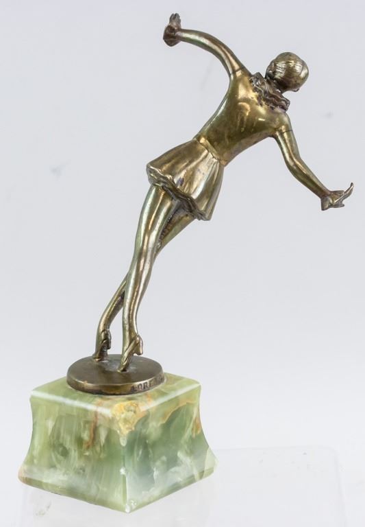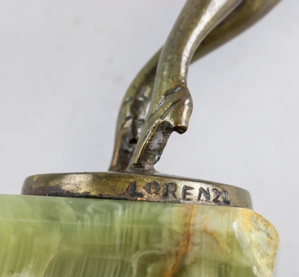 Bronze statue. Featuring dancer balanced delicately on her toes. "LORENZL" stamped near base.