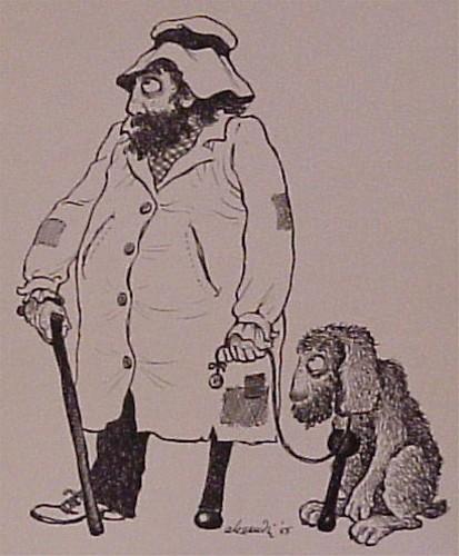 OLD MAN AND DOG, 1965, ink drawing on stiff wove paper, 11 x 8 ½”, signed and dated, No. 6562 on verso. $200/400
