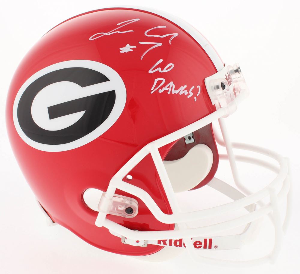 Riddell Georgia Bulldogs full-size replica helmet. Hand-signed in white paint pen by Lorenzo Carter.
