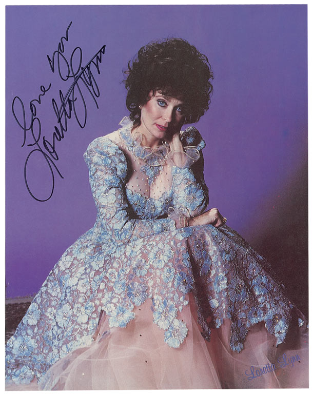 Oversized souvenir program featuring full-sized color images, 11 x 14, signed in black felt tip on the front cover, “Love you, Loretta Lynn.” In fine condition.