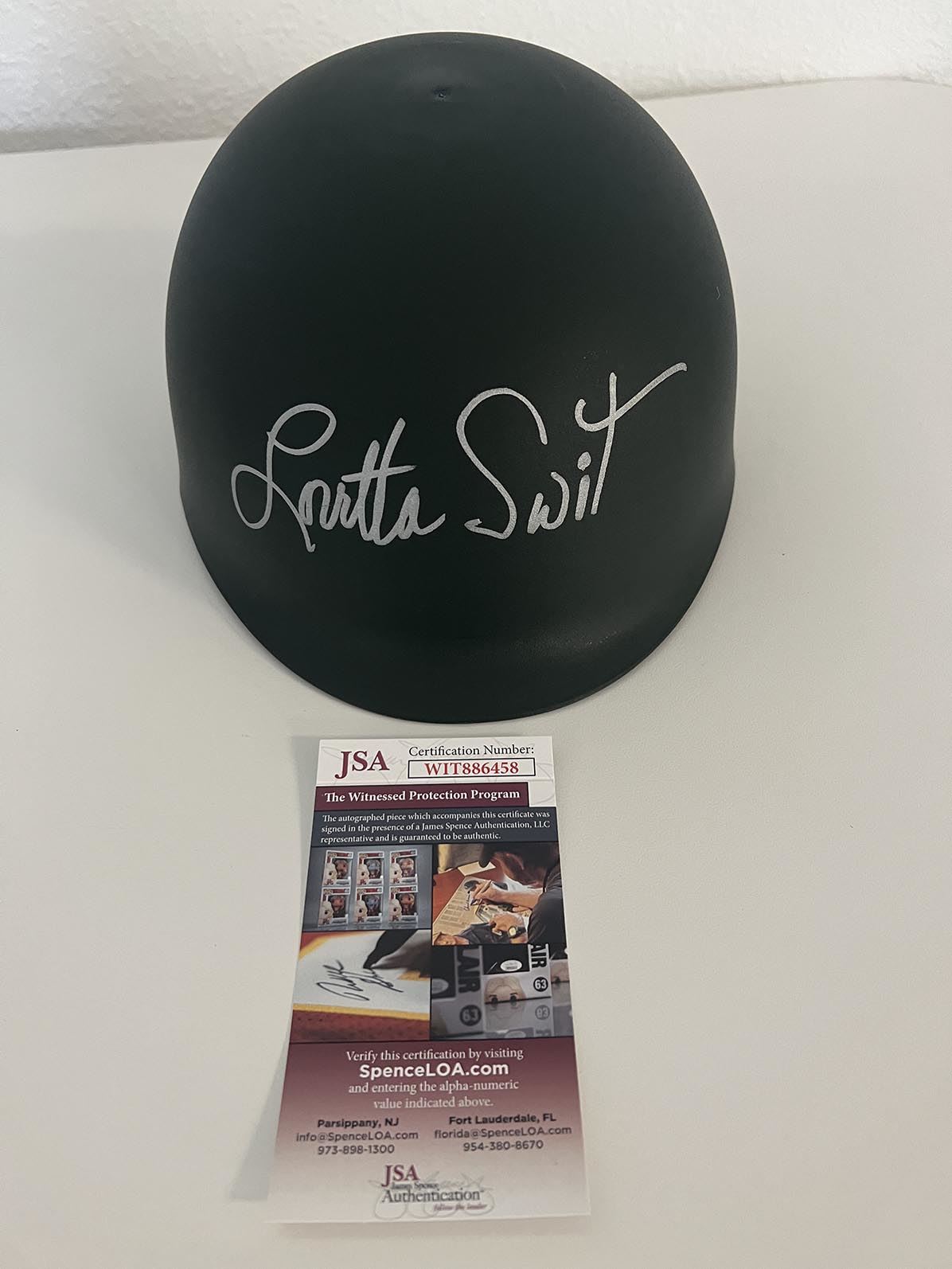MASH Loretta Swit signed prop helmet. JSA Authenticated.10x9 inches