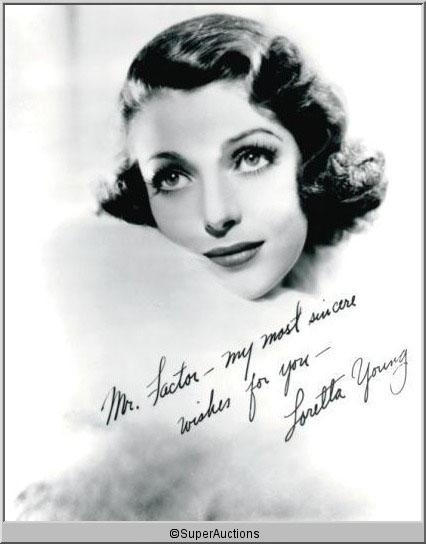 Loretta Young from The Max Factor Collection / (1) 8 x 10 Autographed Negative / "Mr. Factor - My Most Sincere Wishes for You - Loretta Young" / (1) 8 x 10 Black & White Photograph