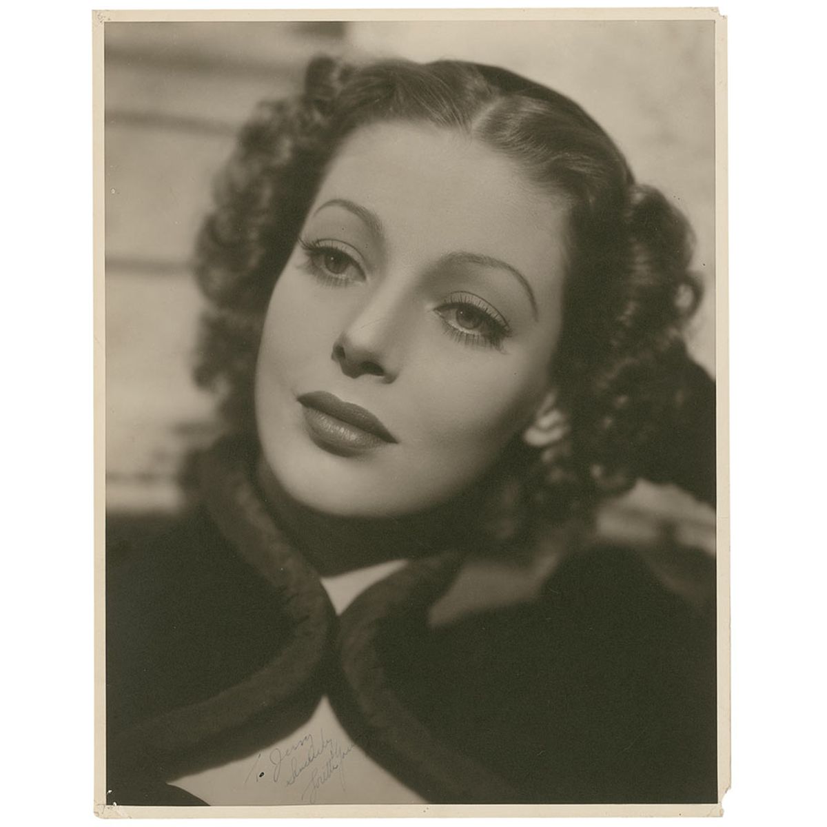 Darling vintage matte-finish 11 x 14 close-up photo, signed and inscribed in fountain pen “To Jerry, Sincerely Loretta Young.” Light rippling to the edges, pin holes to the left corners, small areas of paper loss to the right corners, and a small tack hole to the background, otherwise fine condition.