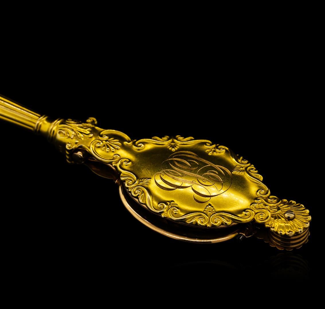 One 19th century Lorgnette 14KT yellow gold hand assembled antique opera glasses with a bright polish finish. The glasses are in very good condition.