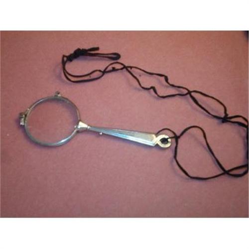 A silver plated folding lorgnette. Circa 1910 Original silk cord. Lens may be changed. Perfect for reading the menu in style!