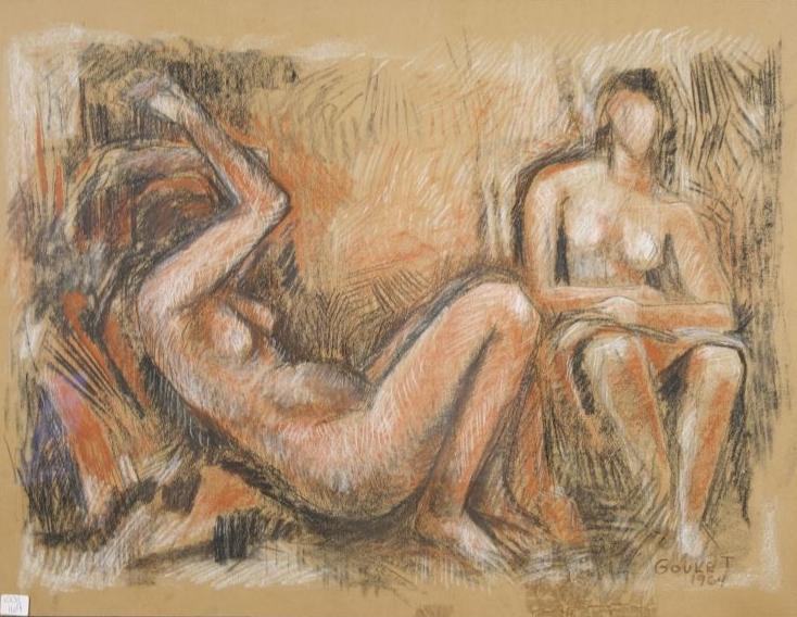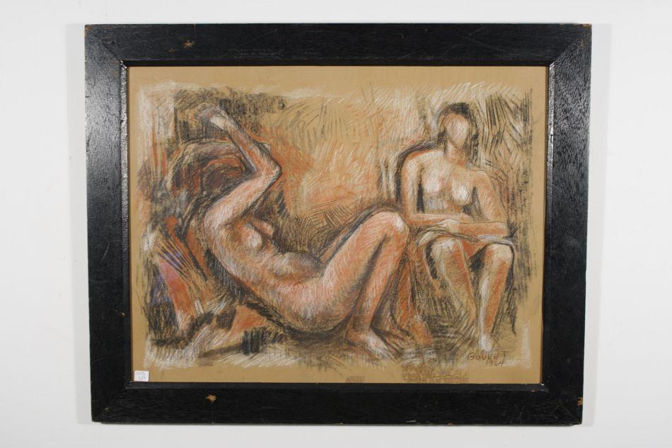 Lorrie Goulet (American, b.1925) Two Female Nudes, Pastel on paper, 1964,