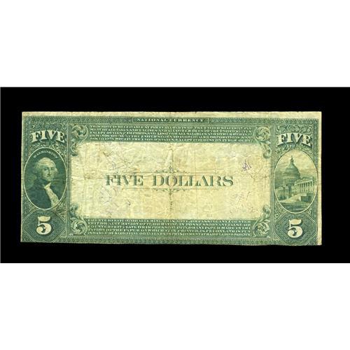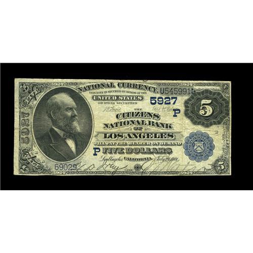 <B>Los Angeles, CA</B></I> - $5 1882 Value Back Fr. 574 <B>The Citizens NB</B></I> Ch. # (P)5927<BR>A scarce type and denomination from any bank. Evenly circulated <B>Fine,</B></I> the right margin trimmed a bit close but with good signatures.