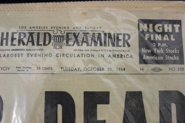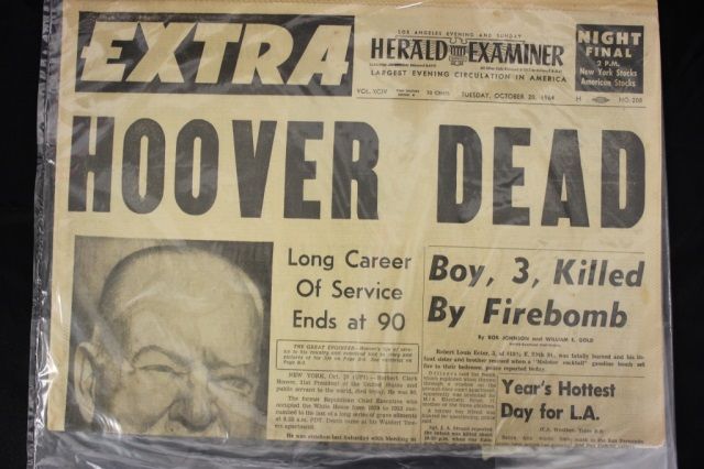 Los Angelas Herald Examiner Express New "Hoover Dead" newspaper in great shape. Own a piece of history.
