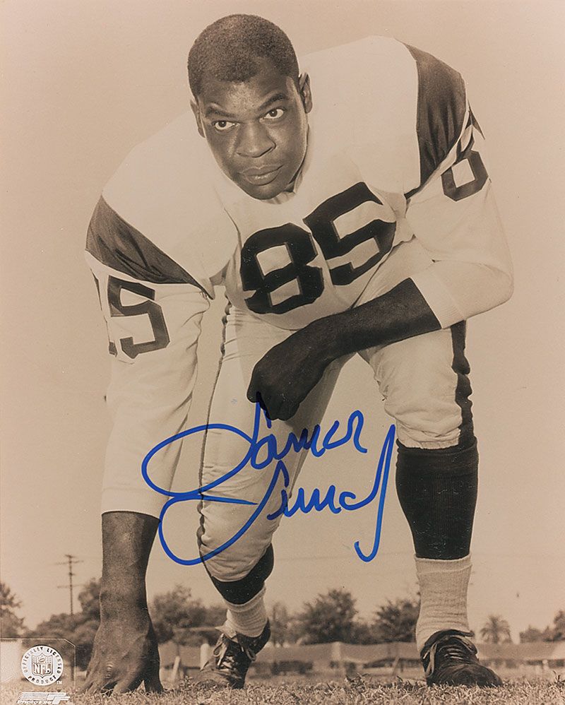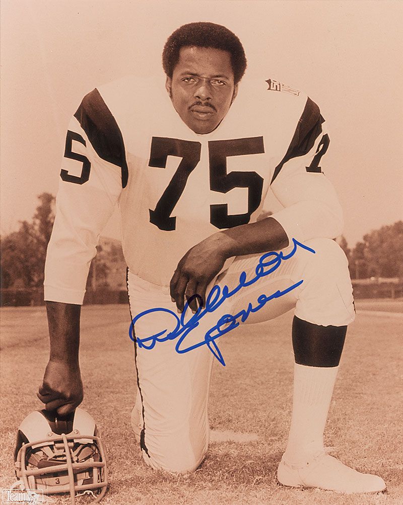 Two glossy 8 x 10 photos of Deacon Jones and Lamar Lundy, each signed in blue felt tip by the player pictured. In overall fine condition.