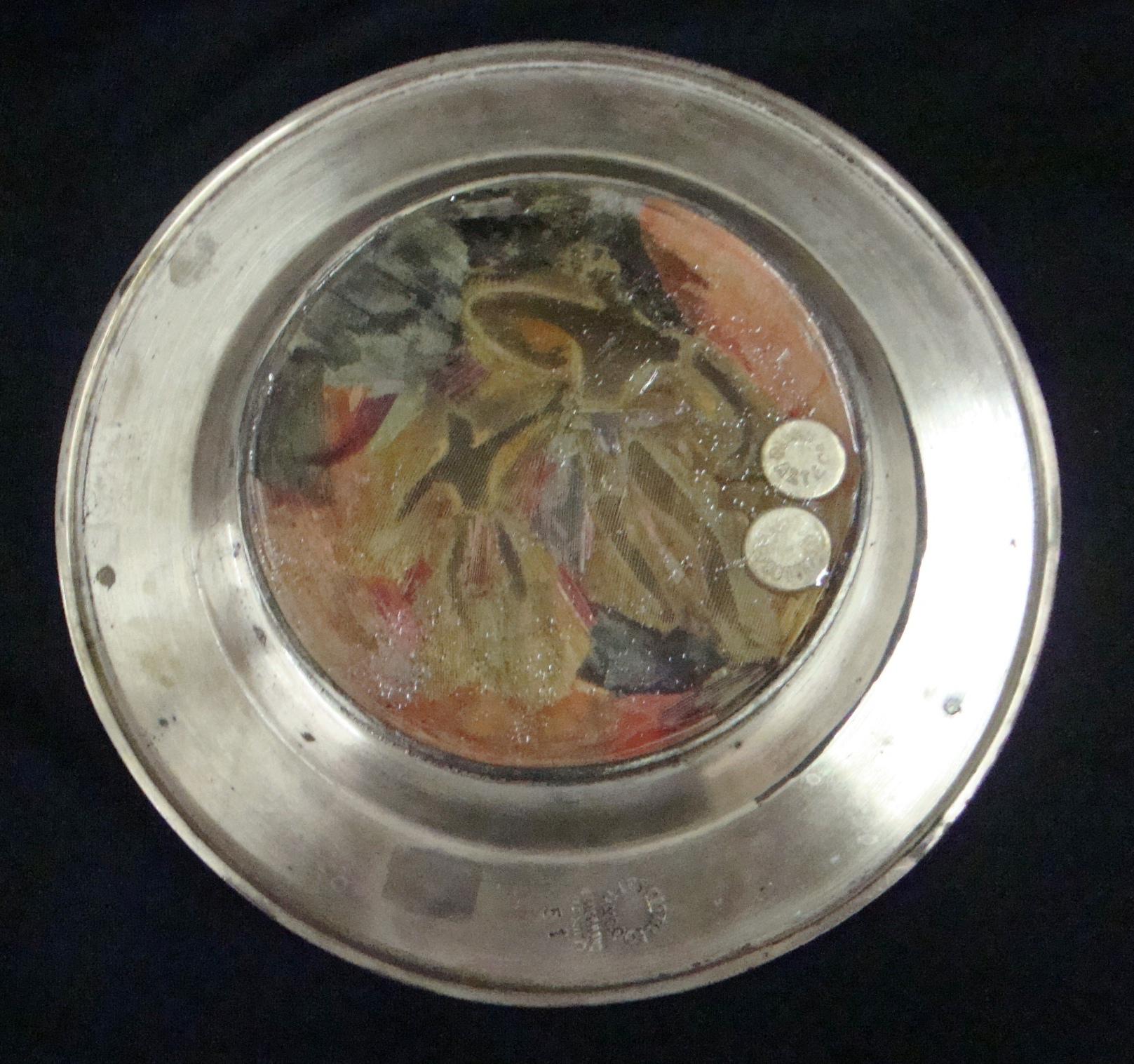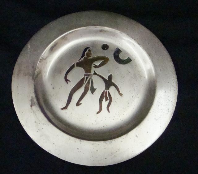 Rarely seen Mexican silver master Los Castillo designed 6" sterling Aztec Pluma method designer plate c.1950