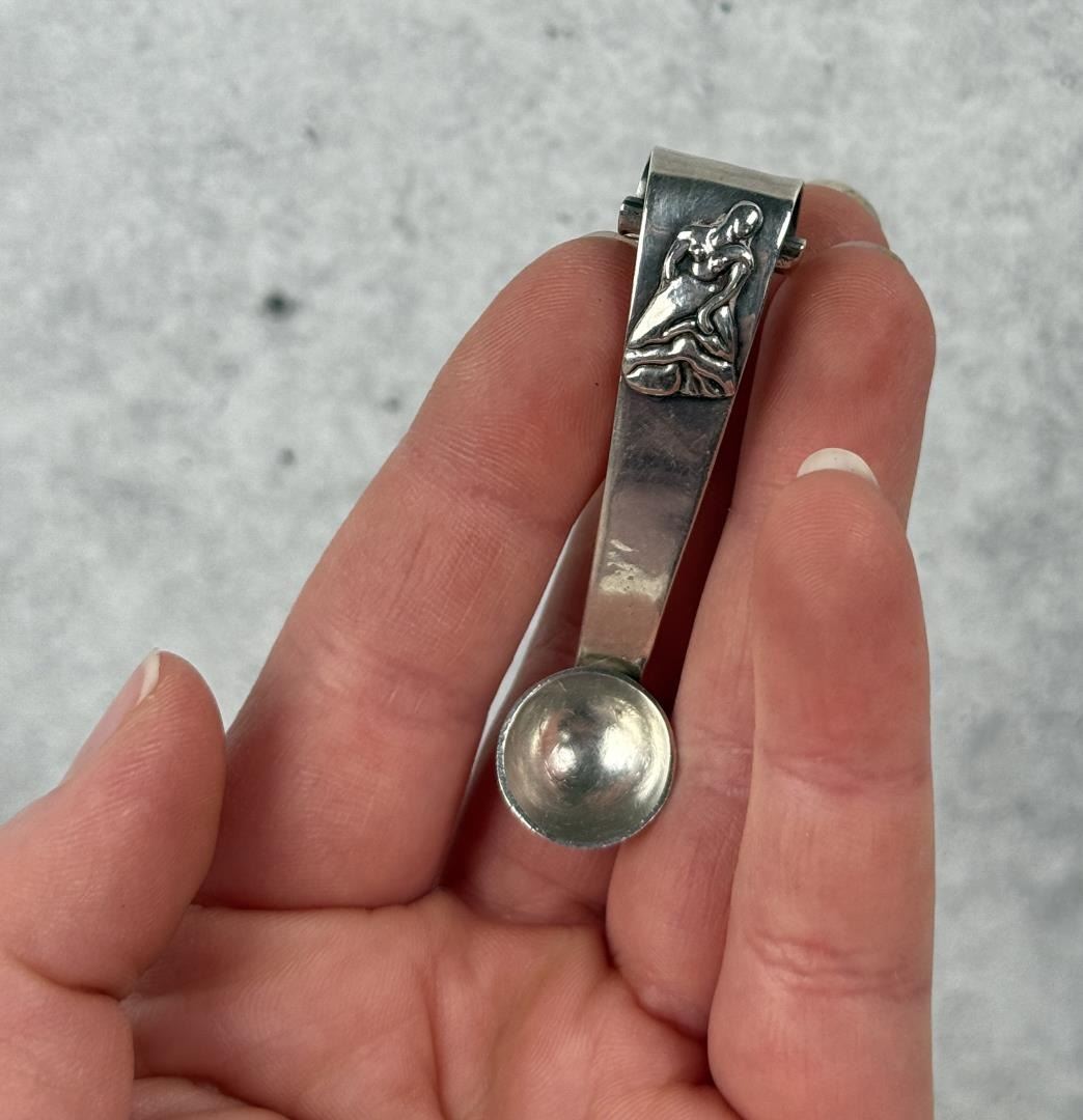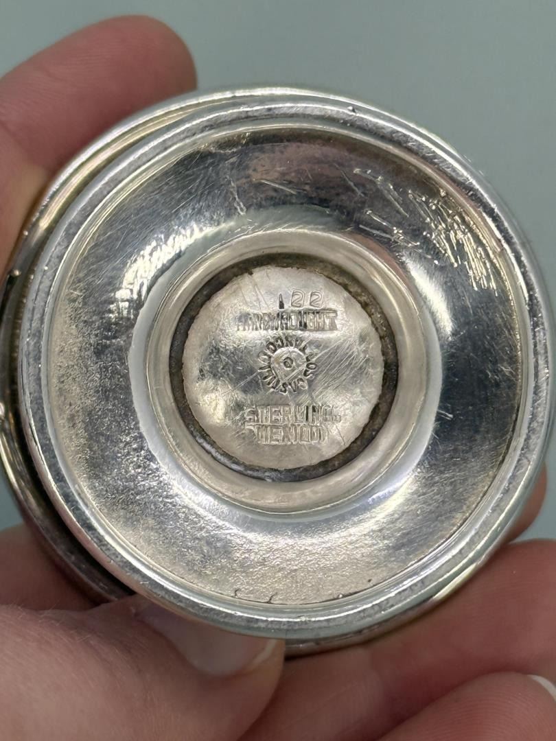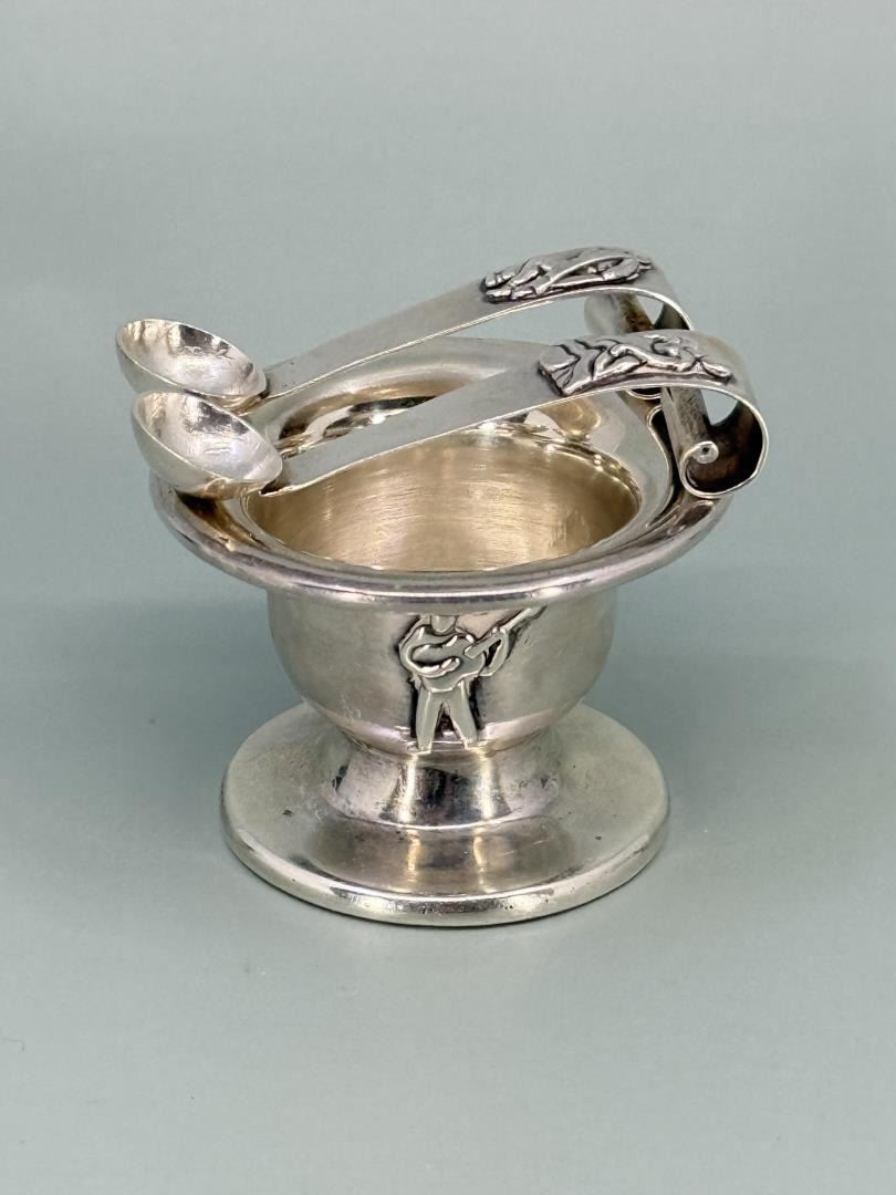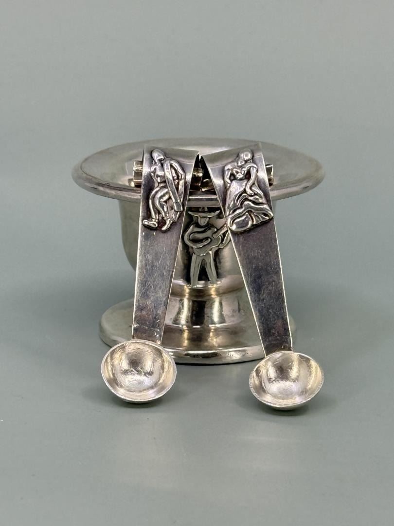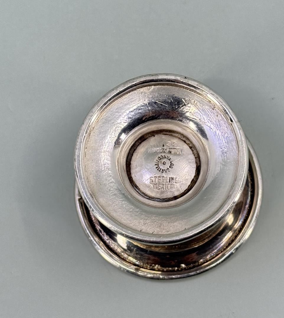 Lot includes two matching spoons. 1 1/2" tall by 2 1/8" in diameter. 68.8 grams.