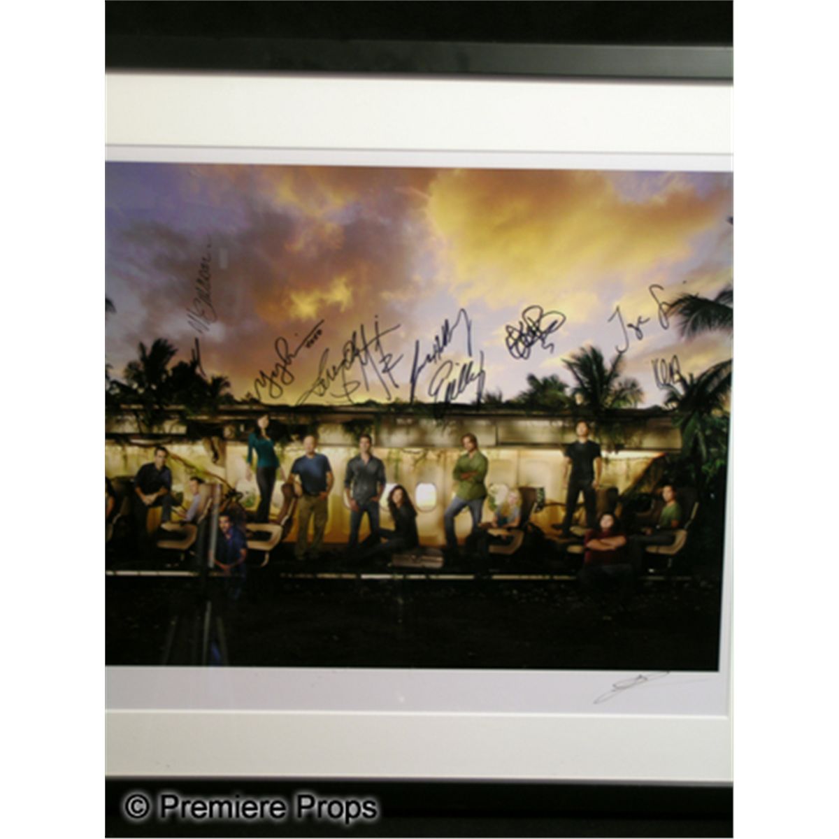 This portrait, which was the final cast photograph ever taken of the “LOST” cast was entitled “The Final Flight” and was part of a limited edition print run of 300. It has been numbered and signed by ABC chief photographer Bob D’ Amico. Making this piece one of a kind however, is that it has also been signed by the cast of the show! Nestor Carboneli (Richard), Michael Emmerson (Ben), Naveen Andrews (Sayid), Yunjin Kim (Sun), Terry O’Quinn (Locke), Matthew Fox (Jack), Josh Holloway (Sawyer), Evangeline Lilly (Kate), Emile de Raven (Clare), Jorge Garcia (Hurley) and Ken Leung (Miles) have all boldly signed by their image on the portrait. The portrait itself is 15”x19” but has been professionally matted to the size of 20x25. The print number is 003/300. Oversized item. Additional postage required.