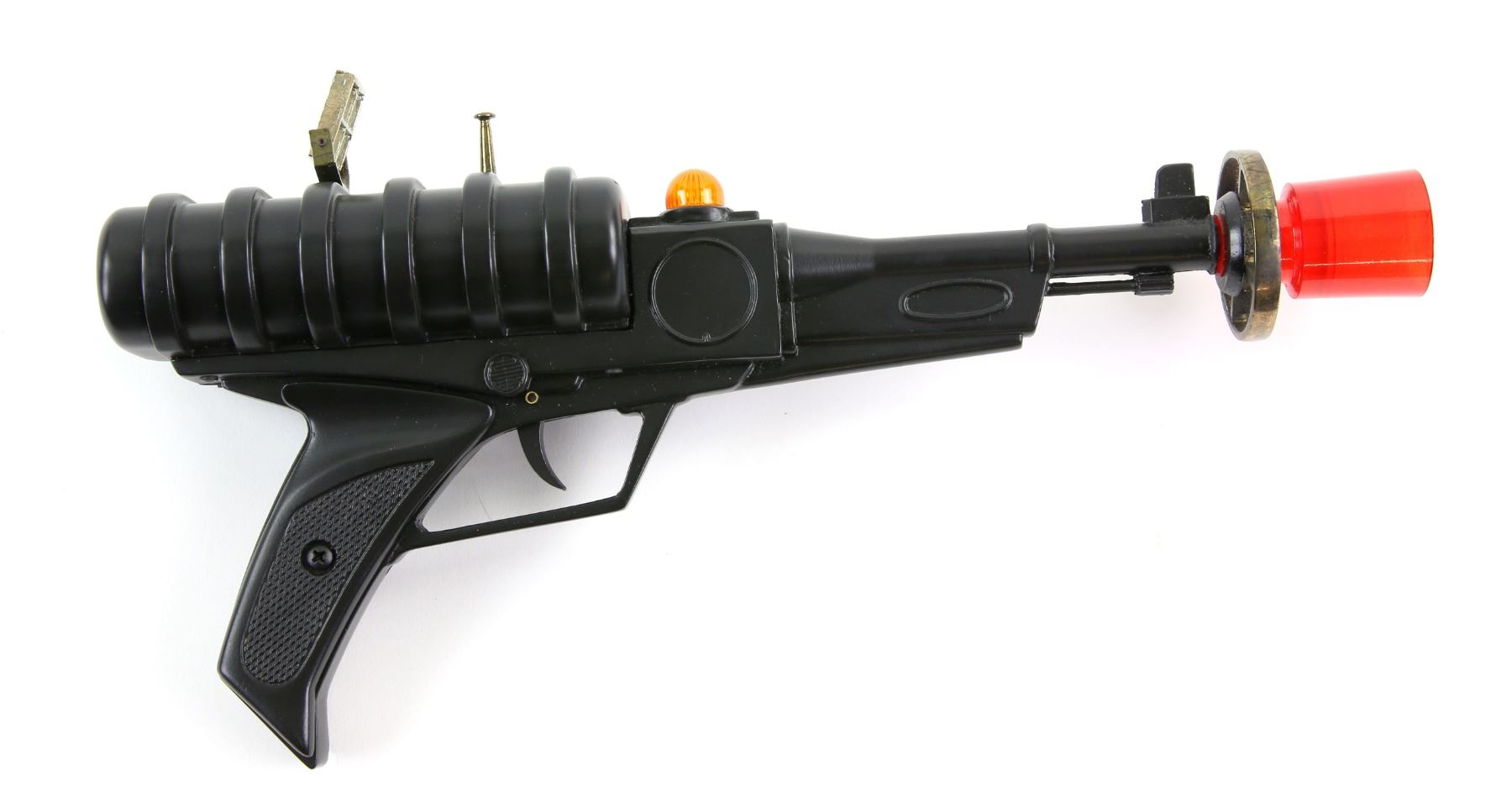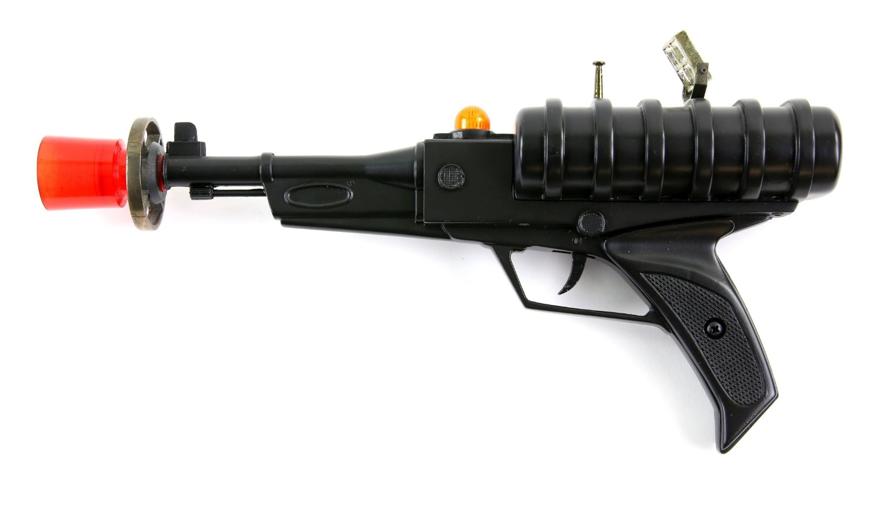 Lost In Space - Replica Limited Edition 1:1 Pistol based on the prop from Season 1. With display base and certificate from Richard A. Coyle (RACPROPS) who constructed the piece, boxed, plaque signed by Bill Mummy, pistol 33cm.