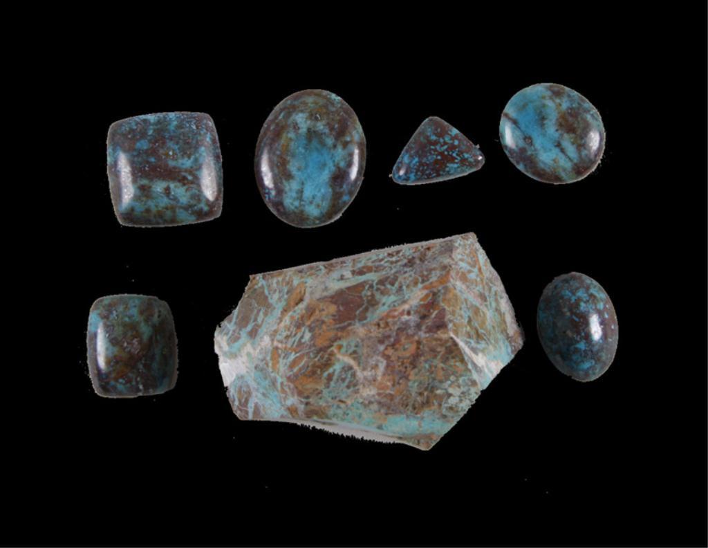 Lost Mine Charysacholla Polished Stones Six in all, plus a natural uncut turquoise stone.Six in all, plus a natural uncut turquoise stone.