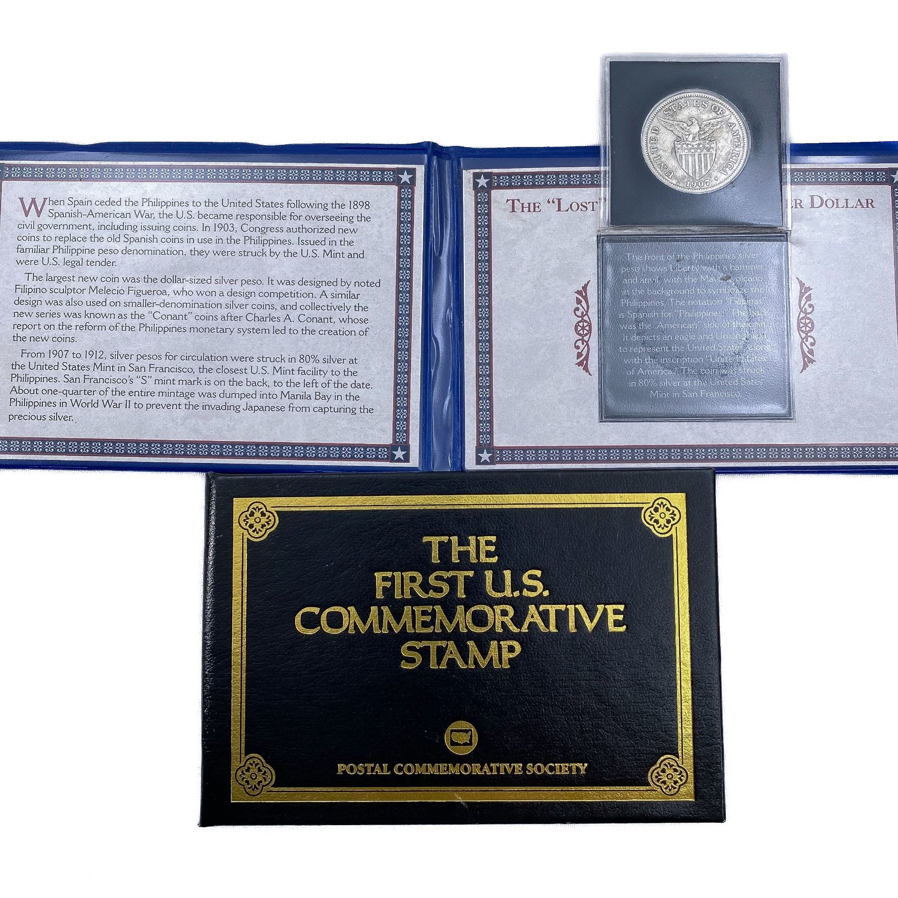 Lost Silver Dollar & Commem Stamp Set (2 Items)