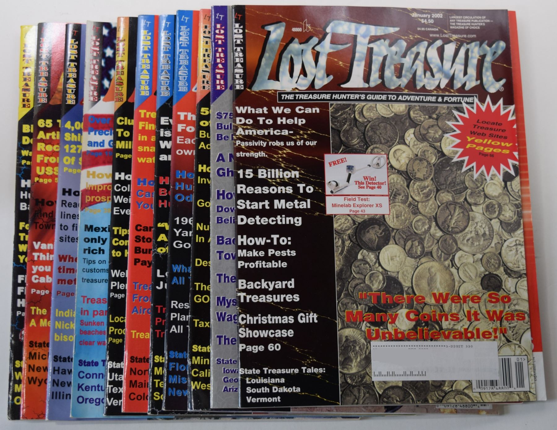 This lot contains issues of the popular treasure hunting magazine: Lost Treasure for the year 2002. Issues included in this lot: