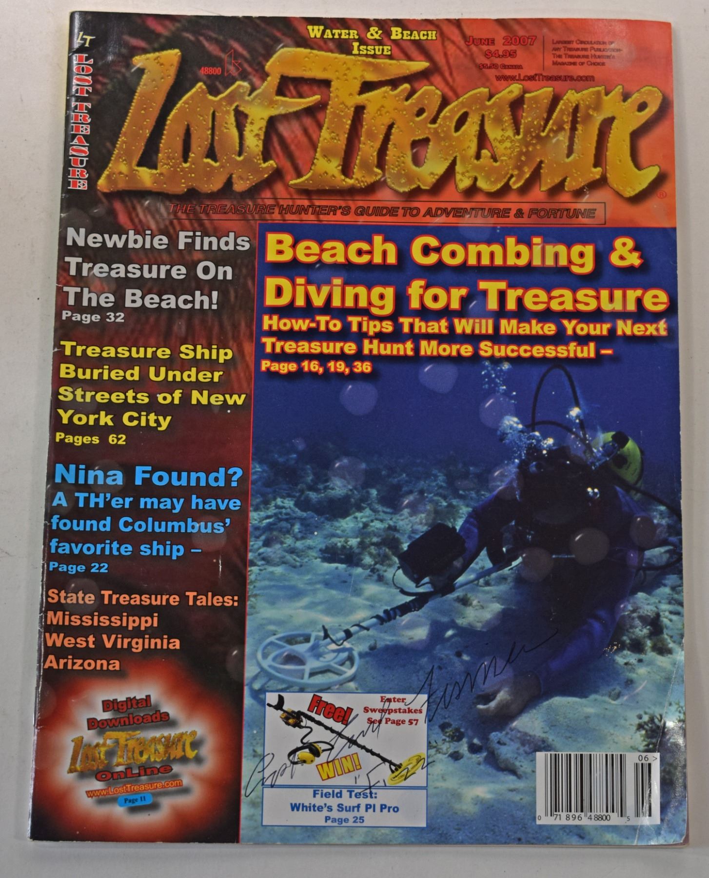 This lot contains the June 2007 issue of the popular treasure hunting magazine, Lost Treasure. It is signed on the cover by well-known treasure hunter, salvor, author and TV personality, Carl Fismer.