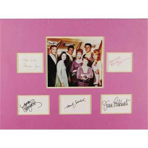 <B>"Lost in Space" Cast Member Autograph Set.</B></I> A presentation of five individual <I>Lost in Space</B></I> (1965-68) cast member autographs signed, "Best Wishes - Jonathan Harris," "Good Luck -Bill Mumy," "Angela Cartwright," "Mark Goddard," and "June Lockhart." Matted in purple satin in common with a color 8" x 10" cast photograph, with an overall size of 24" x 18". <I>Authenticated by the world's foremost curators of television artifacts, The Comisar Collection of Beverly Hills.</B></I><BR><BR><b>Shipping:</b> Clothing, Costumes & Jerseys (<a target="_blank" href="http://www.heritageauctions.com/common/shipping.php">view shipping information</a>)