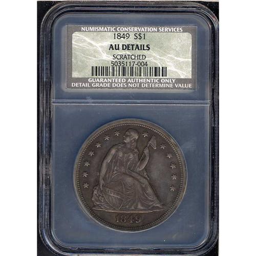 Somewhat scratched. Still acceptable and well placed for a collector of these well-designed and often hard to find early seated Liberty silver dollars. The 1849 has a lower mintage than most.